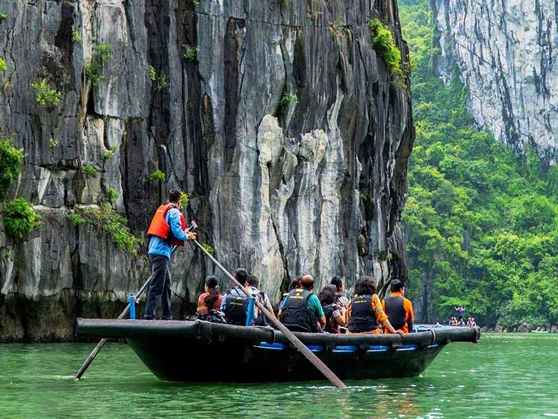 08:00: Discover Luon Cave, featuring open caves and unique vegetation, through an exciting kayak adventure or a relaxing ride on a bamboo boat guided by local fishermen.