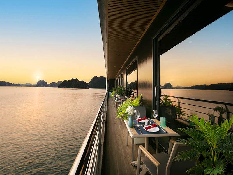 17:15: Unwind as the sun sets over Halong Bay. Indulge in an elegant "Afternoon Tea" or your favorite drink at the Calista Breeze Bar. Take advantage of the Happy Hour "Buy 2 Get 1 Free" offer from 17:30 to 18:30, featuring exclusive Calista Cruise beverages paired with delicious light bites.