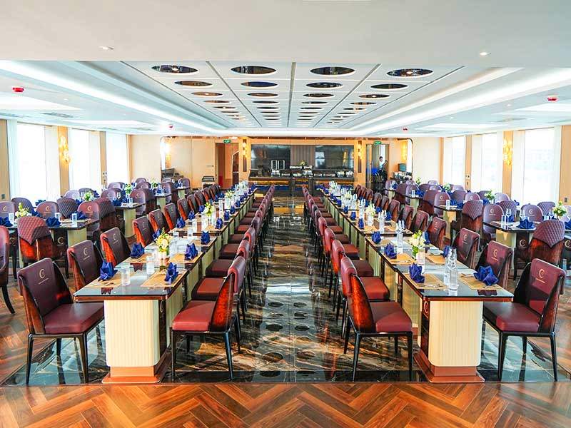 12:30 - 13:30: Enjoy a premium lunch at Luna Halong Cruise's luxurious restaurant spaces with nearly 100 premium dishes of Asian and European cuisines.