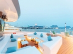 Enjoy a light breakfast onboard while the yacht cruises past some of the bay's iconic landmarks, including the majestic Bai Tho Mountain and a series of stunning limestone islets.