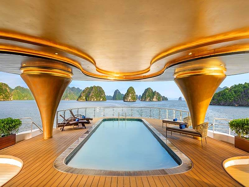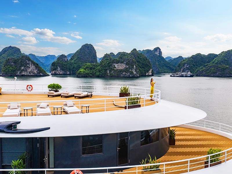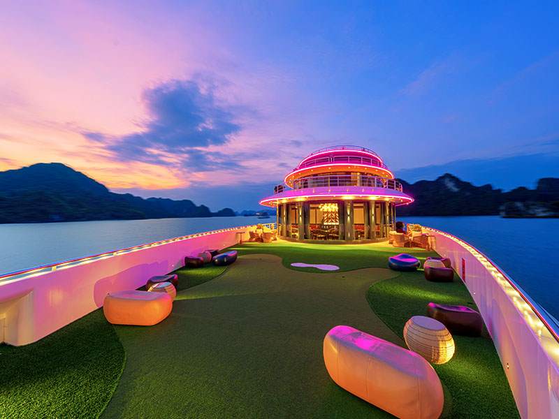 20:30 - 22:30: Rest and relax with the luxurious facilities on the cruise such as: enjoying cocktails at the bar while admiring the Halong Bay night sky, indulging in spa treatments for health care after a long day of exploration, or experiencing the karaoke room space with friends...