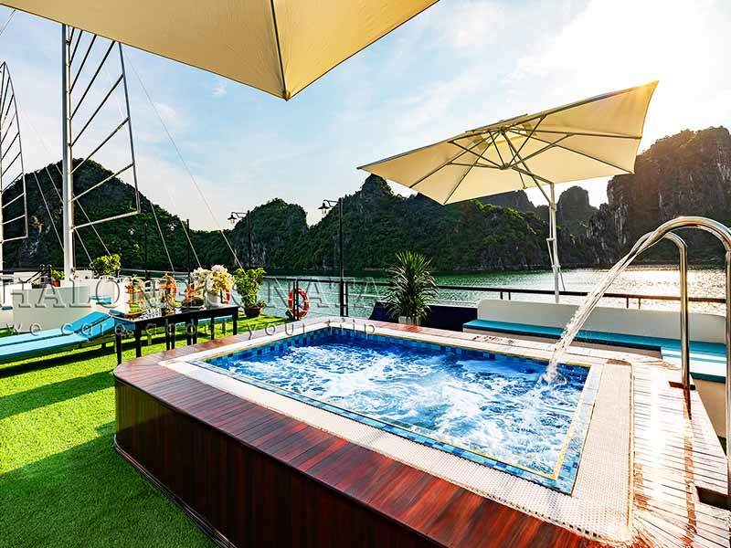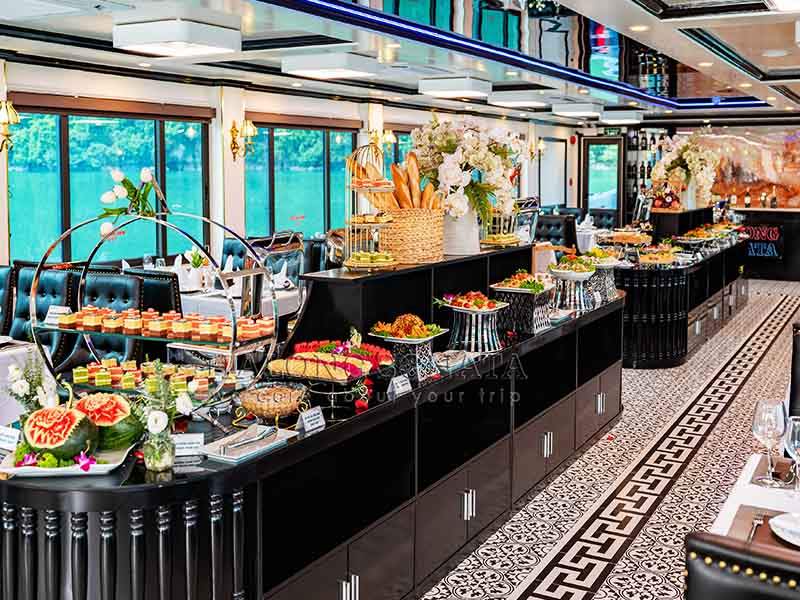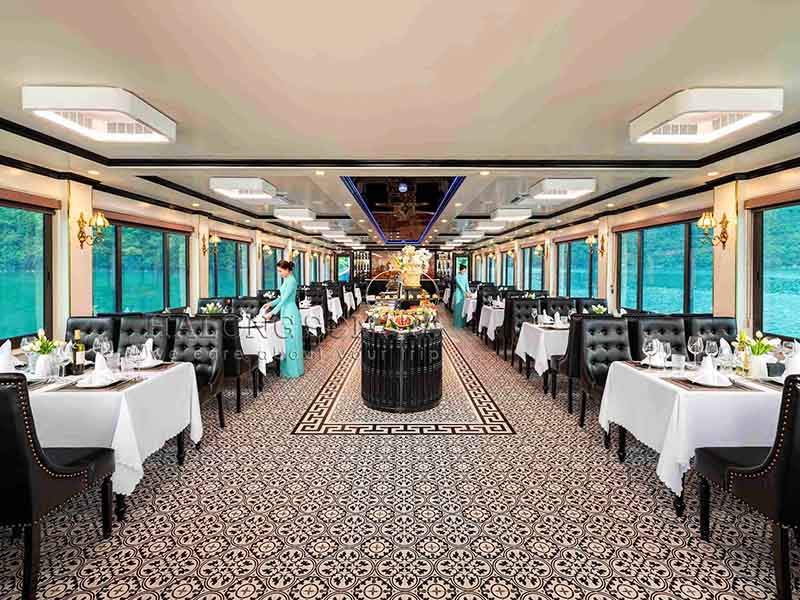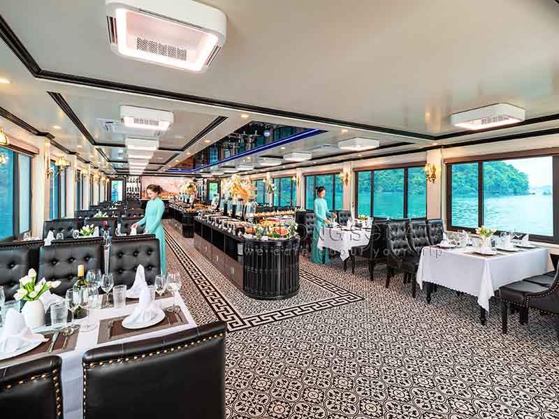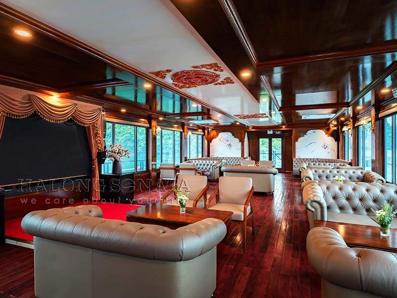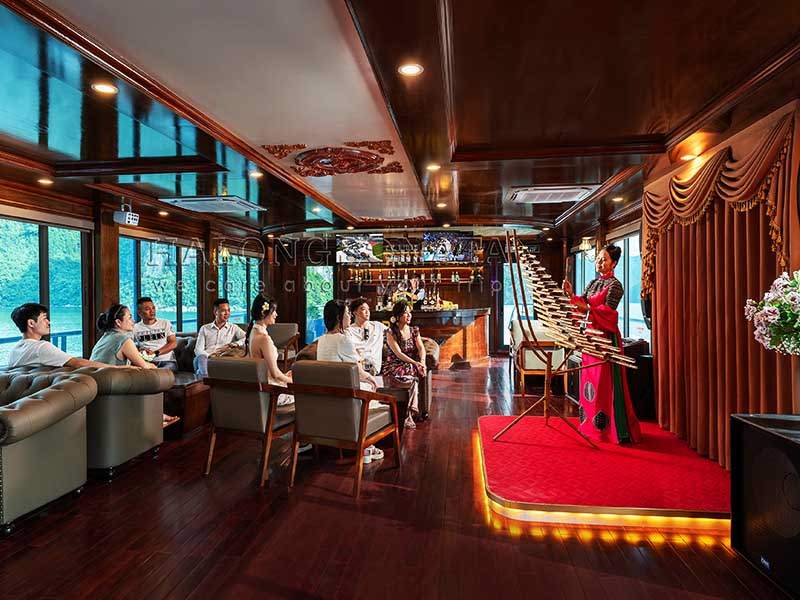 16:30: Returning to the ship for a Sunset Party, enjoying a Live traditional music performance during back to Tuan Chau Marina. You will have great time to chill out with friends on Upper deck with unforgettable moments.