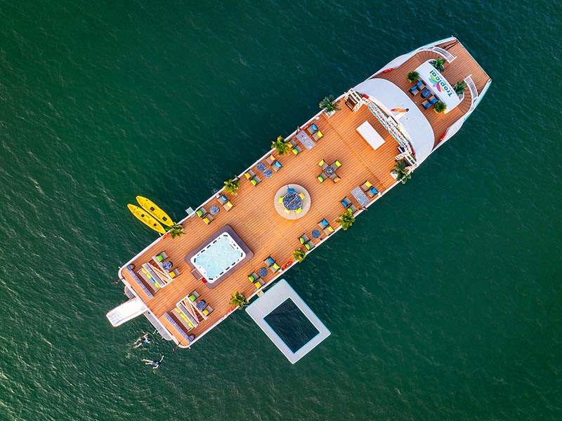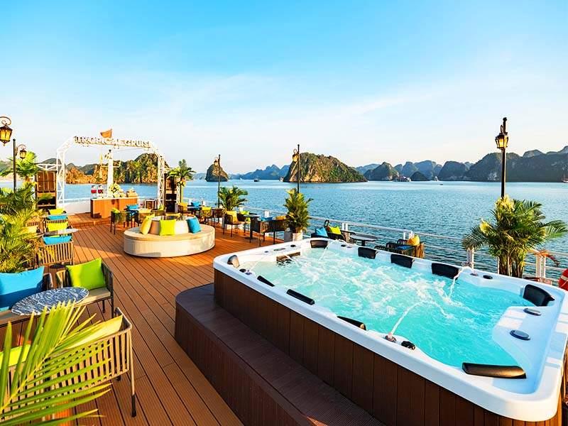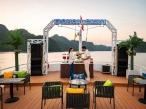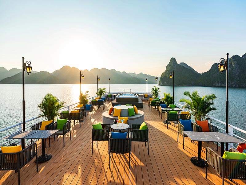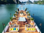 Return to the cruise and relax in the Jacuzzi on the sundeck. End your day with a lively Sunset Party: Wine, Tea, Fresh Fruits, Sweet Cakes, Music, and Dancing as the sunsets romantically over Lan Ha Bay, while the cruise comes back to the Harbor.