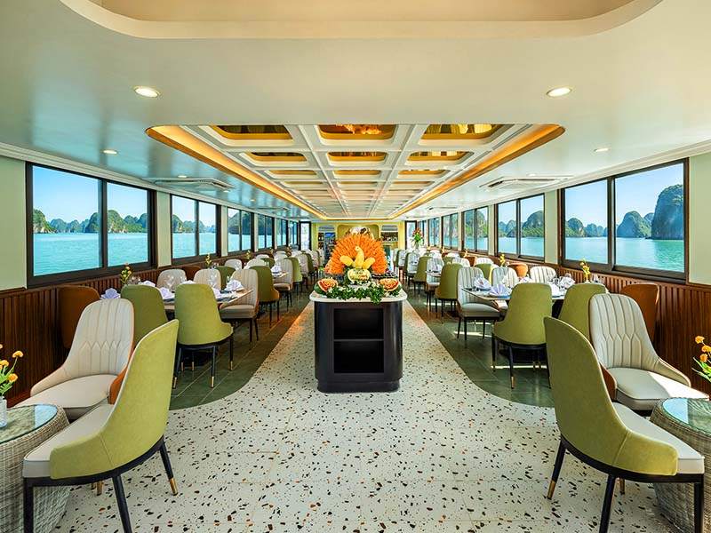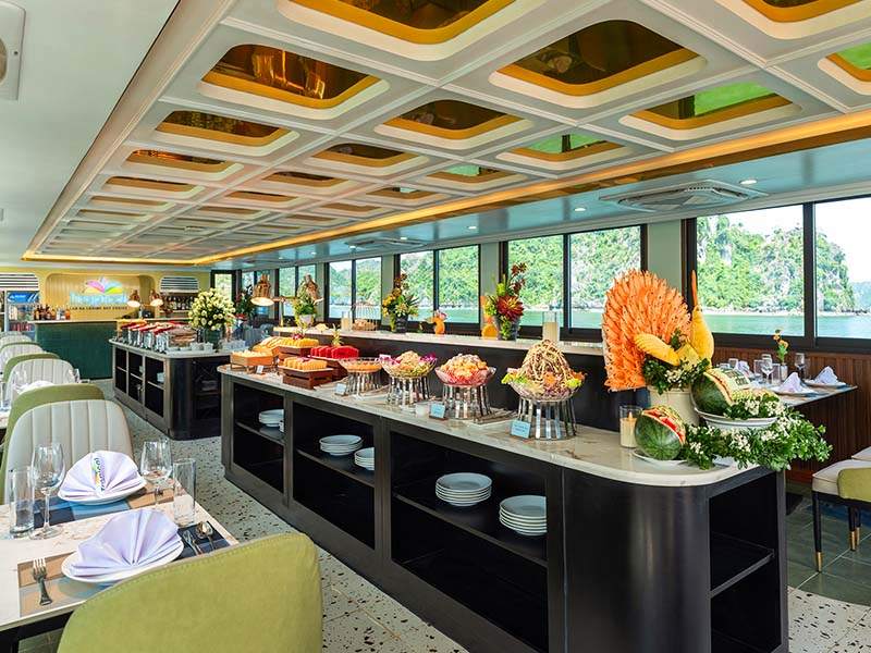 Enjoy a 5-star buffet lunch on board, featuring a wide variety of fresh seafood and delicacies, while the cruise sails through Lan Ha Bay - Cat Ba Island.